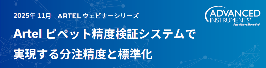 Advanced Instruments(Part of Nova Biomedical)社が日本のお客様を対象に Artel PCS ピペット精度検証システムとMVSマルチチャンネルピペット精度検証システムに関するウェビナーを11月に行います。
