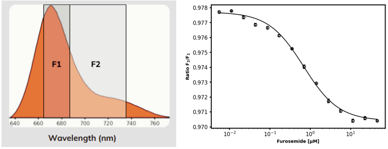 Fida Neo検出器は、特に低分子-タンパク質相互作用の分析感度と データ信頼性を高めるために比率測定を行います。 この独自技術を、FIDA Lambda Dynamic(FIDA LD)と呼びます。これは、標準的なFIDA 実験より得られる蛍光比率計測に基づいており、BRICでは見落としてしまうわずかな蛍光変化を検出することで相互作用解析を行います。